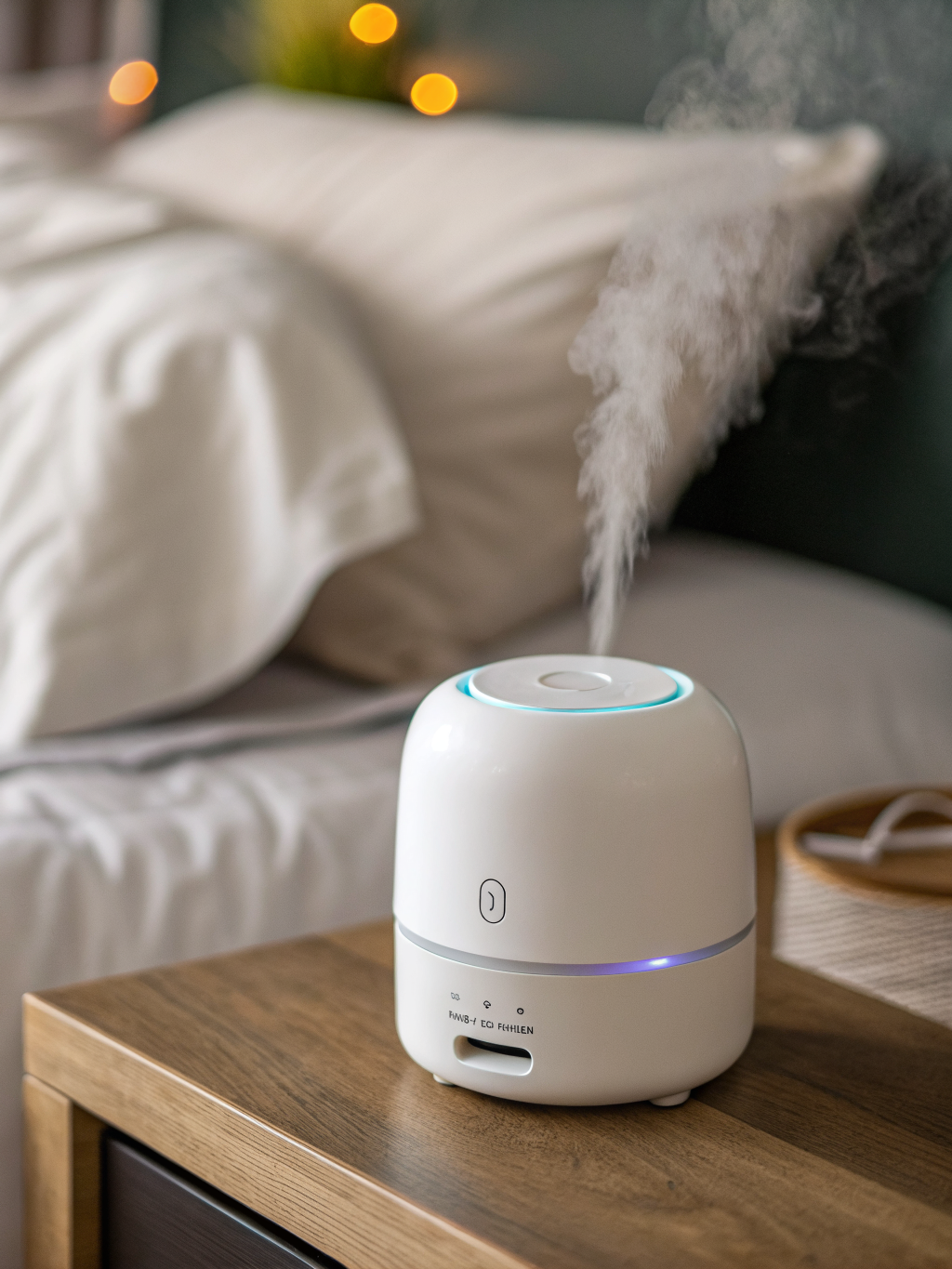 - Place the humidifier a few feet from the bed, not blowing directly at pillows.